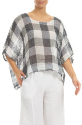 Loose Grey Check Linen Blouse 51276
