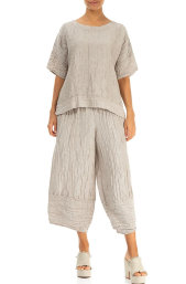 Buks i hør med elastisk linning og sidelommer.