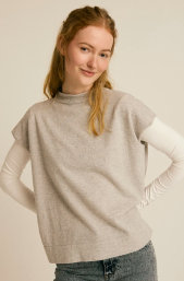 Vest med kort vingeærme og hals med rullekant.