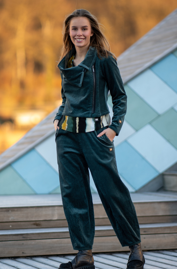 Buks i stretchy blød fløjl med elastisk linning.