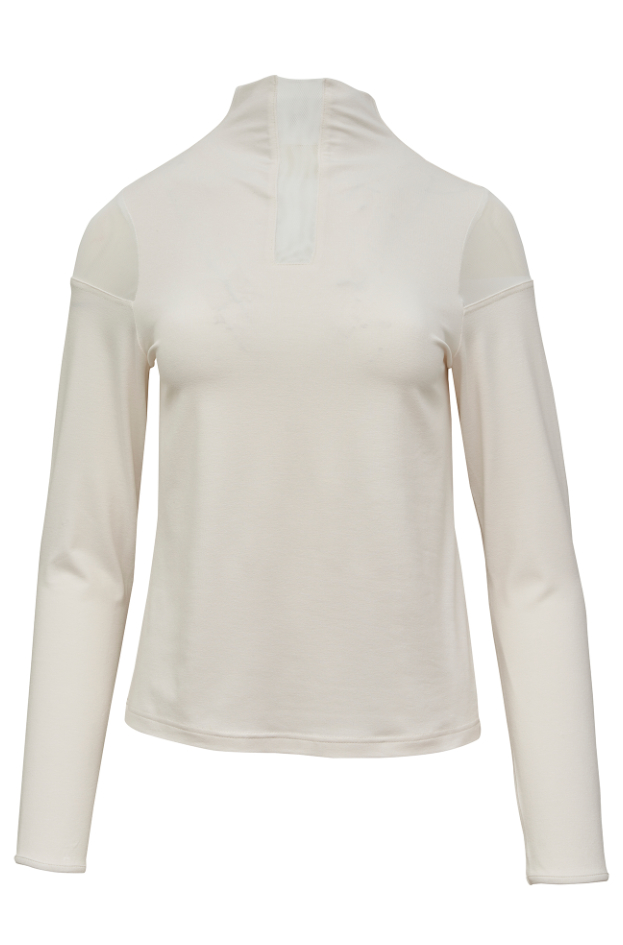 T-Shirt i stretchy bambus med mesh detaljer ved rullekrave og skulder.