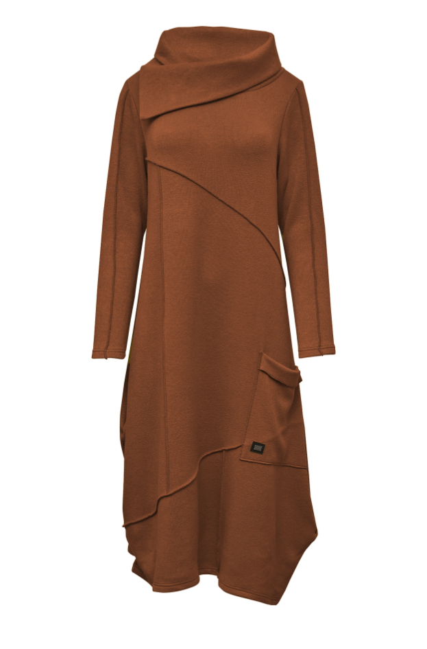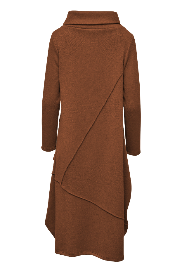 Kjole i kraftig kvalitet med asymmetrisk krave.