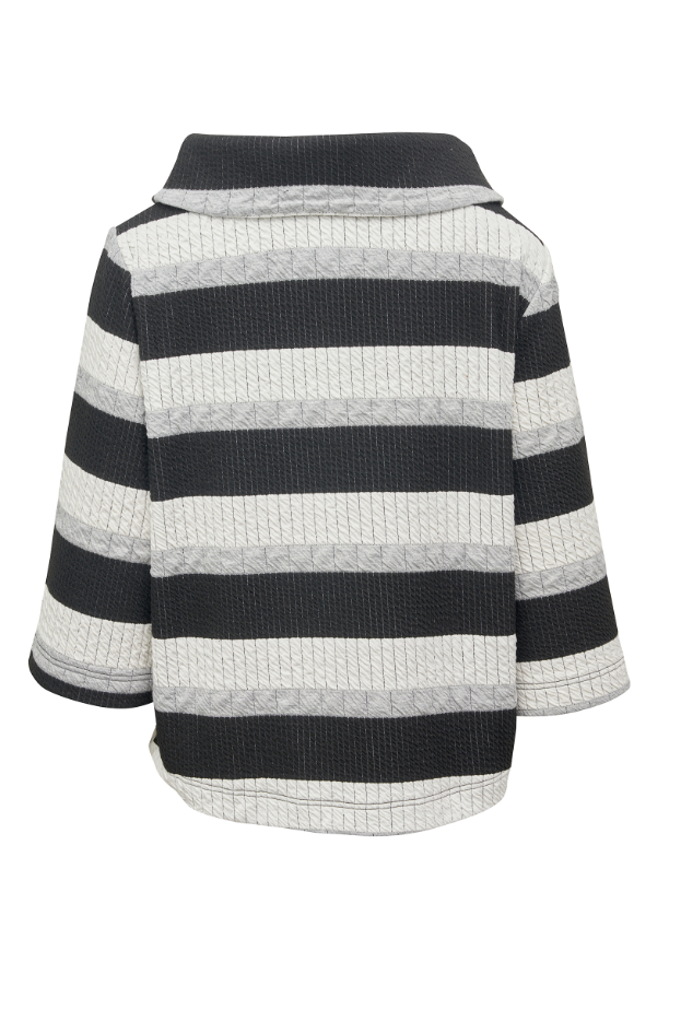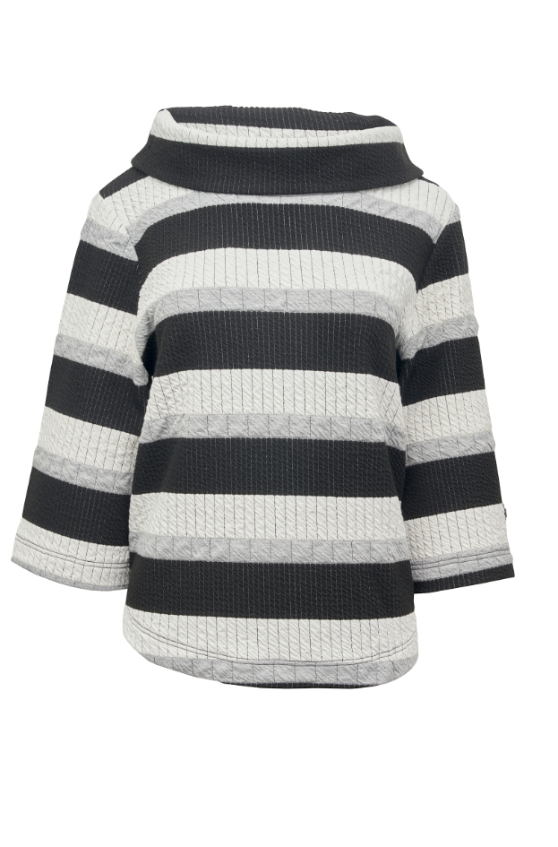 Bluse i blødt materiale med stor krave og 3/4 ærmer.