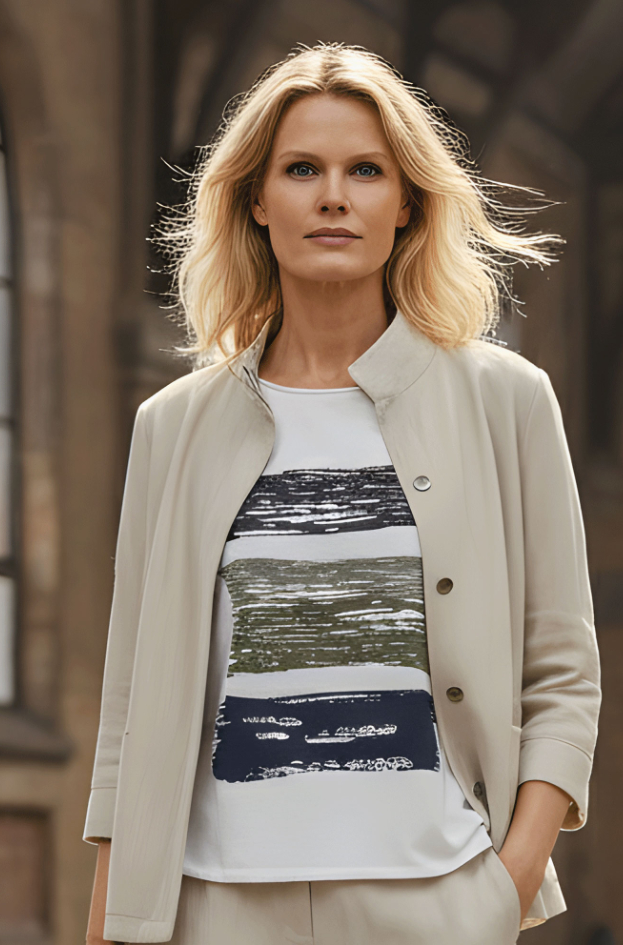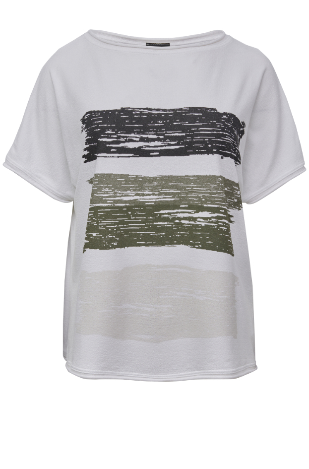 Farve: hvid med sort/army/beige grafik.