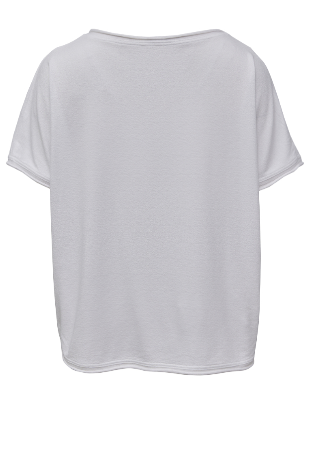 Bluse i viscosestrik med korte ærmer og rullekanter.